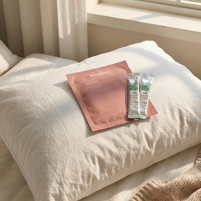 「貼って眠るだけ。平日の夜のご褒美」 仕事や家事で疲れた平日の夜。複雑なケアは少し億劫ですよね。 そんな夜は、リードルショットで肌を目覚めさせたあと、バイオダンスを貼ってそのままお休みください。 肌が水分を飲み干すように、白いパックが時間とともに透明に変わっていきます。 翌朝、剥がした瞬間の「ゆで卵」のようにつるんとした感動を、ぜひ味わってください。
